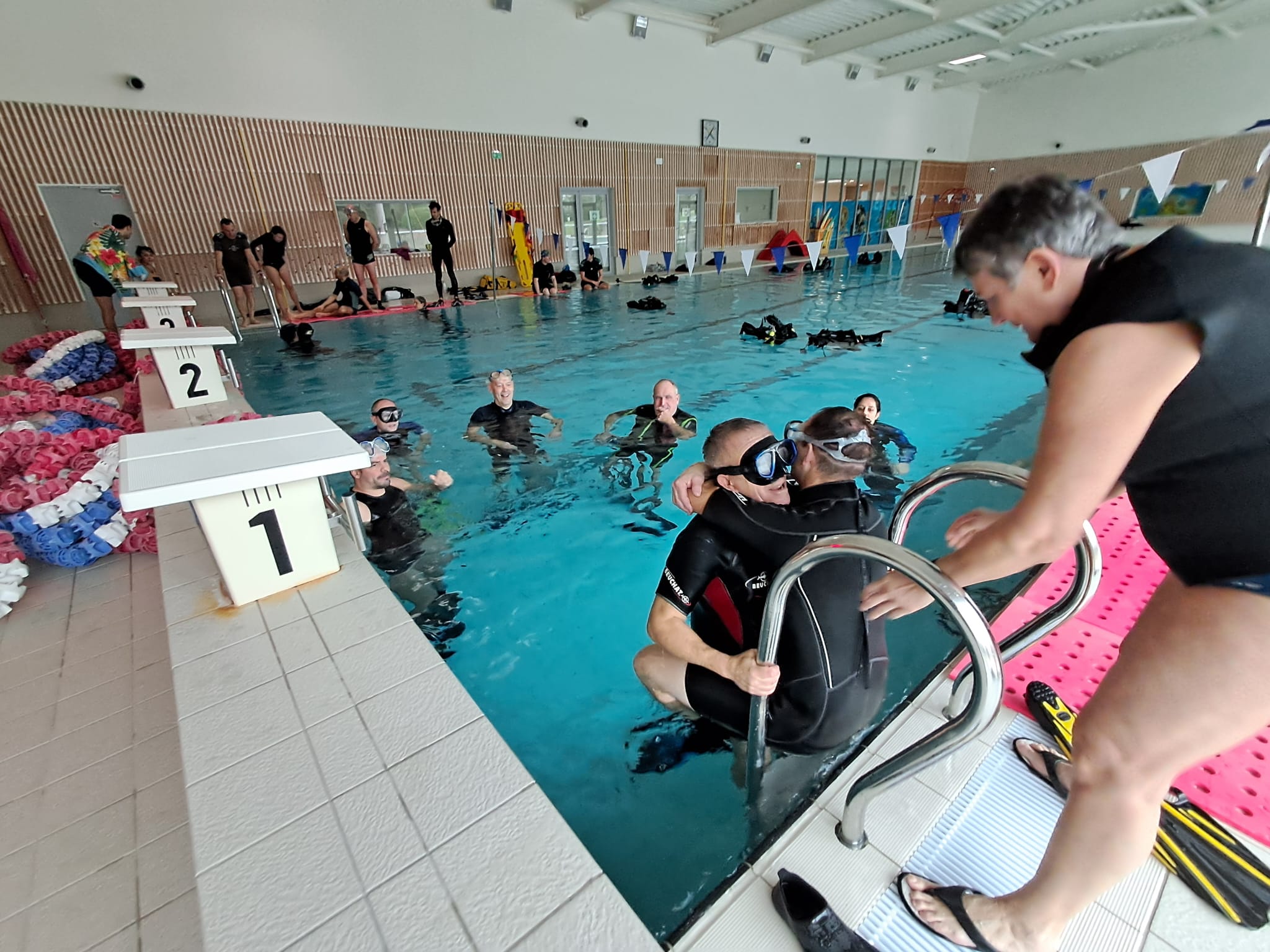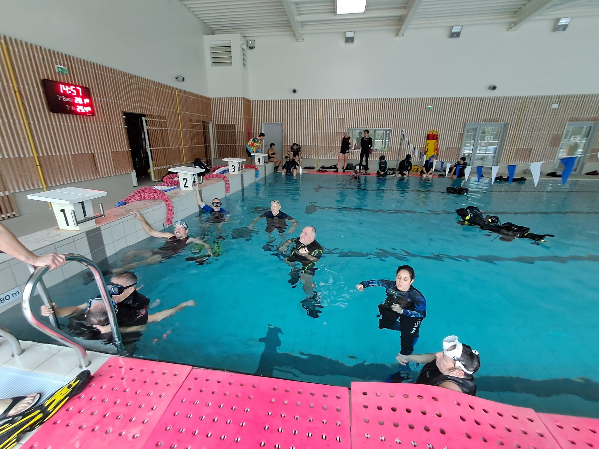 Bien sûr, mille mercis à la Communauté de Commune de la Dombes pour la disponibilité de leurs locaux (samedi et dimanche matin) et à Audrey ROSSET, Directrice de la piscine NAUTI DOMBES pour sa générosité ainsi qu’à la présidente de Bourg Plongée pour sa contribution à la réalisation de cette formation CODEP01.